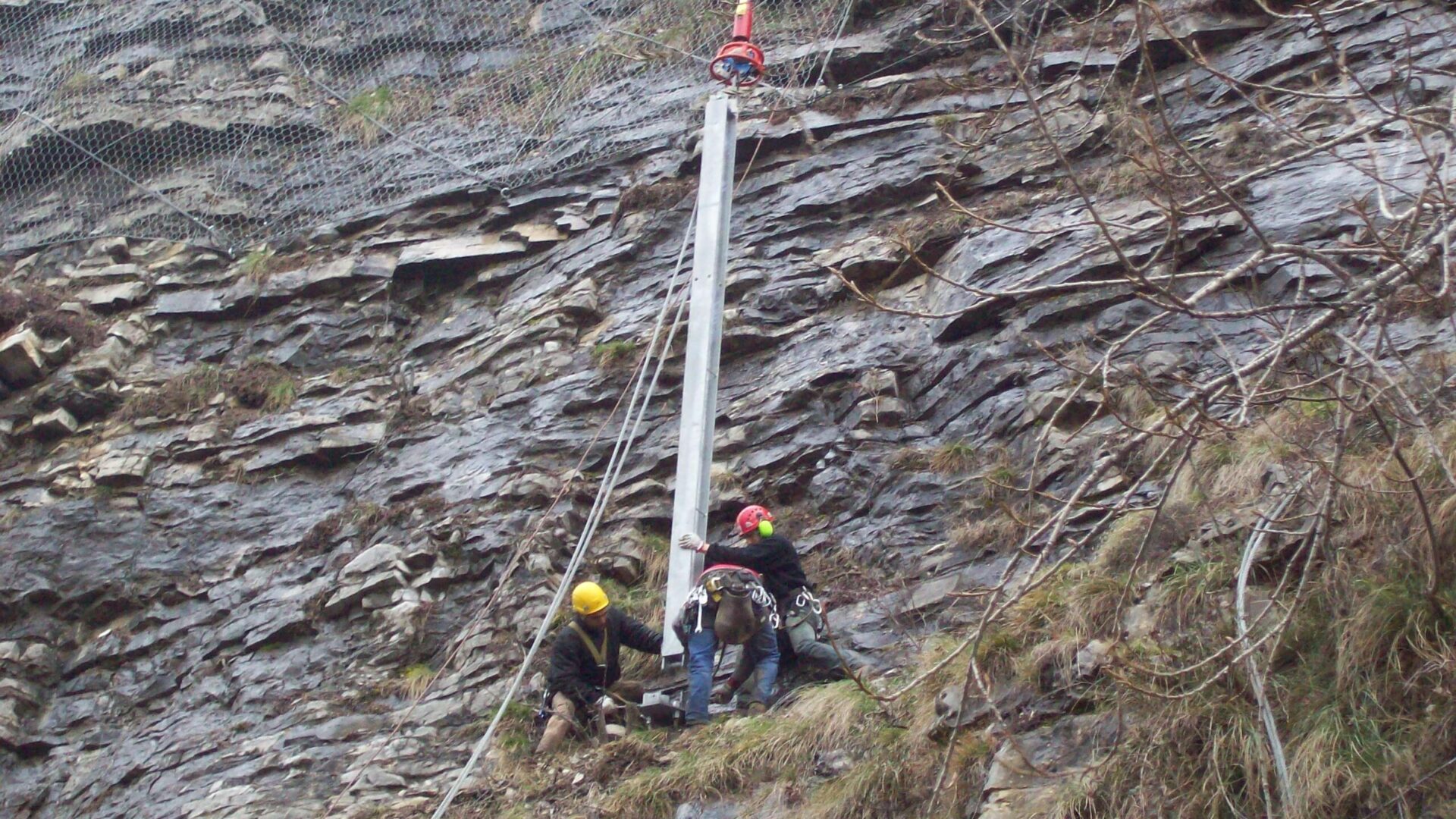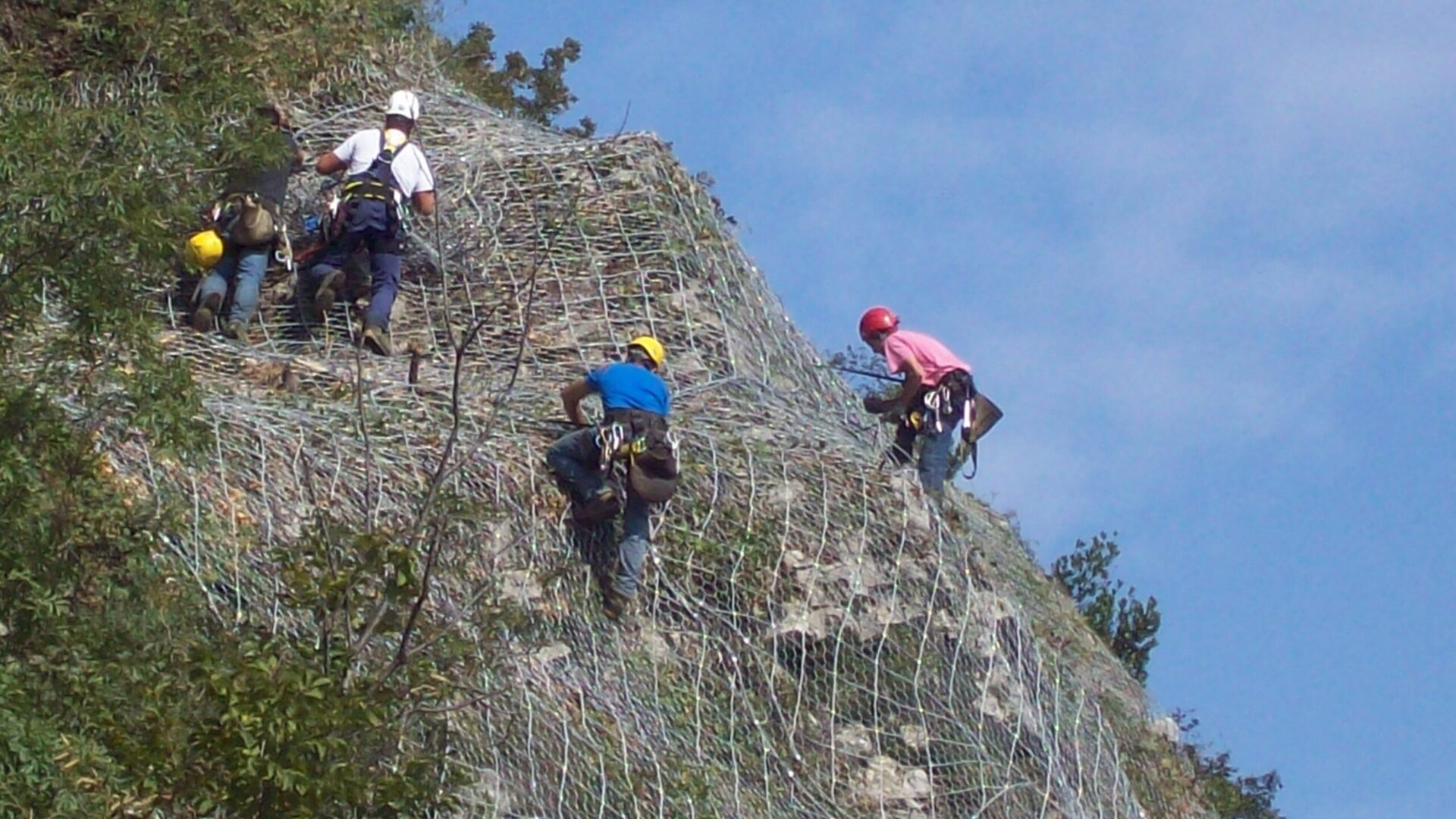 Esegue interventi di difesa, attiva e passiva, dei versanti: disgaggi di pendici rocciose, bonifica montana e demolizioni con o senza utilizzo di esplosivo; posa in opera di reti metalliche armate e pannelli in fune per la protezione di strade, autostrade, ferrovie e centri abitati; chiodature ed imbragature di volumi rocciosi instabili; realizzazione di ancoraggi e tiranti in acciaio; barriere paramassi, paravalanghe e fermaneve; lavori aerei con impiego di elicottero.